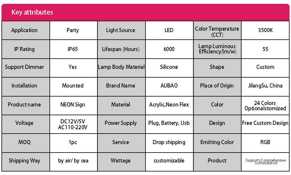 AUBAO NEON provides high-quality, custom LED SIGN/">Neon SIGNs to clients worldwide. We offer a one-stop service that integrates design, production, and global delivery.